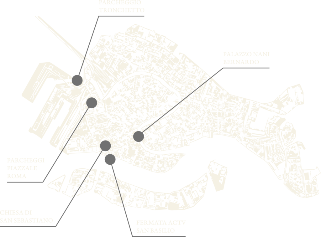 Da Piazzale Roma potete prendere il vaporetto linea 2 e scendere alla fermata San Basilio. potete prendere il vaporetto linea 6 (più veloce) oppure linea 2. Dalla fermata del vaporetto siete a breve distanza dalla Chiesa di San Sebastiano (circa 5-7 minuti a piedi). Per essere puntuali alle ore 11:00 in chiesa, vi consigliamo di arrivare a Piazzale Roma non oltre le 10.15.