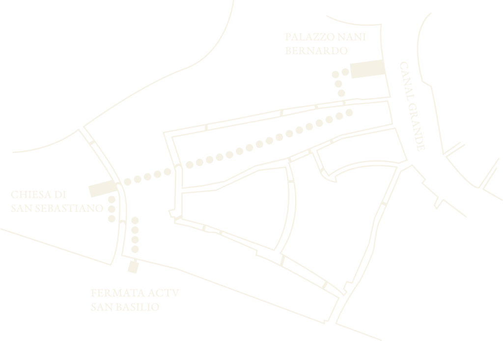 Dal momento in cui si lascia l’auto a Piazzale Roma, una piacevole passeggiata tra calli e ponti vi condurrà alla Chiesa di San Sebastiano in circa 15 minuti. Se invece pernottate nel cuore di Venezia, vi consigliamo una sistemazione nel sestiere di Dorsoduro. La chiesa si trova lungo il Rio di San Sebastiano.